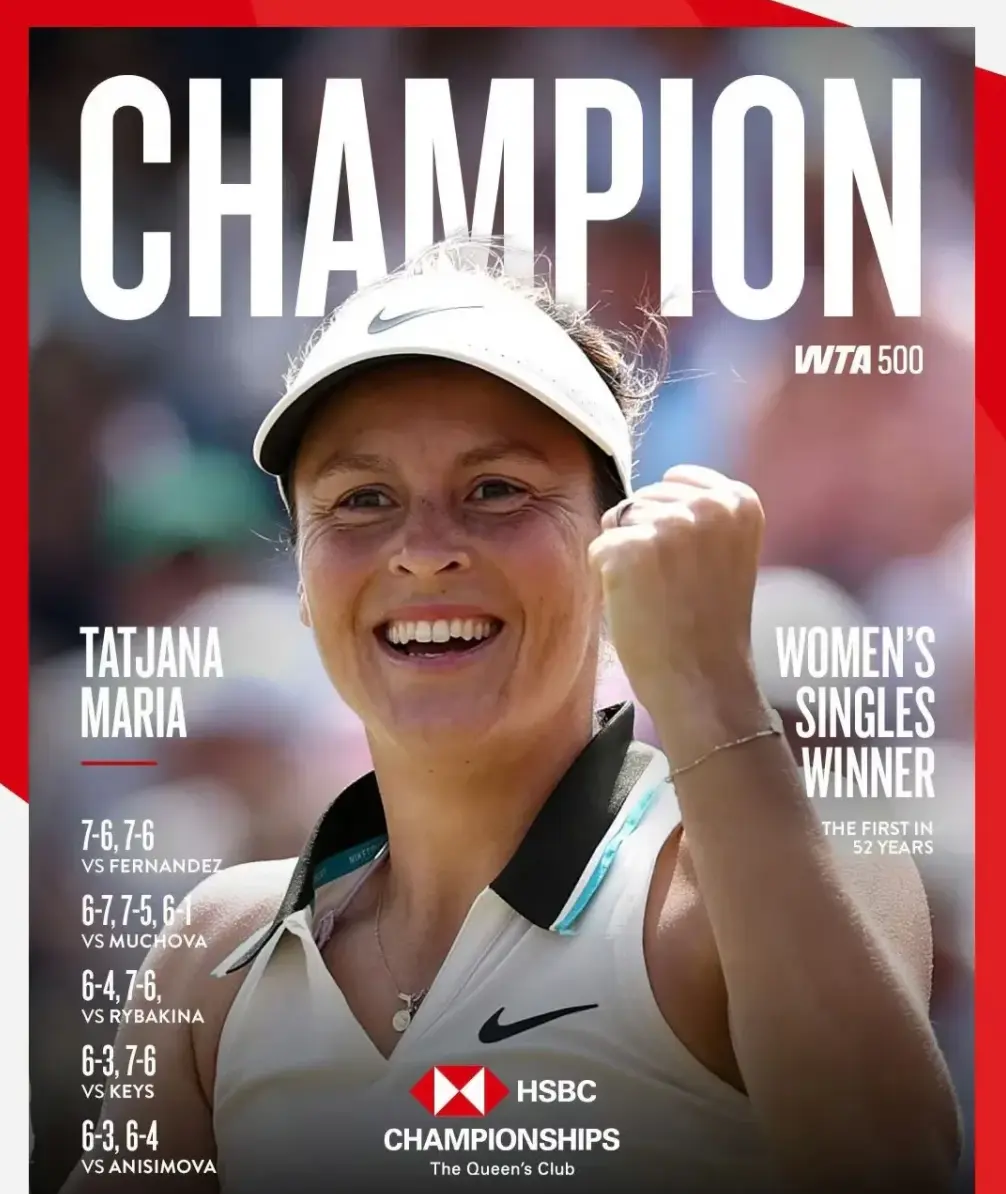 2020年女皇在奥克兰夺冠时已经38岁了,现在玛丽亚在女王杯登顶,也让她成为女皇小威之后,第二位最年长的WTA巡回赛冠军。